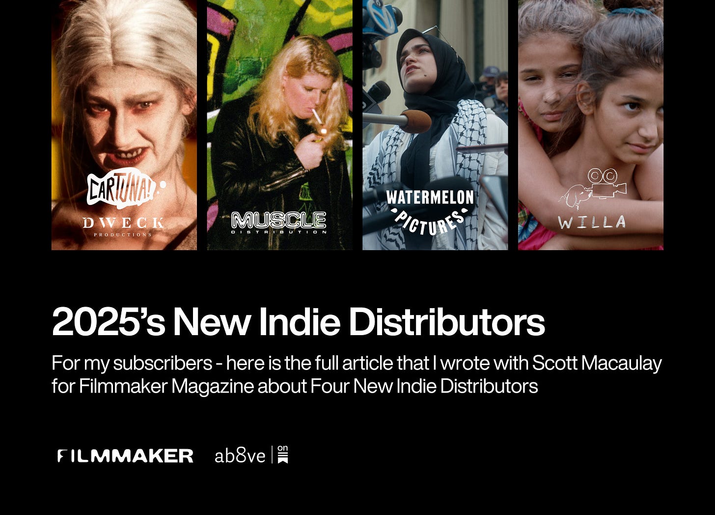For my subscribers - here is the full article that I wrote with Scott Macaulay for Filmmaker Magazine about Four New Indie Distributors