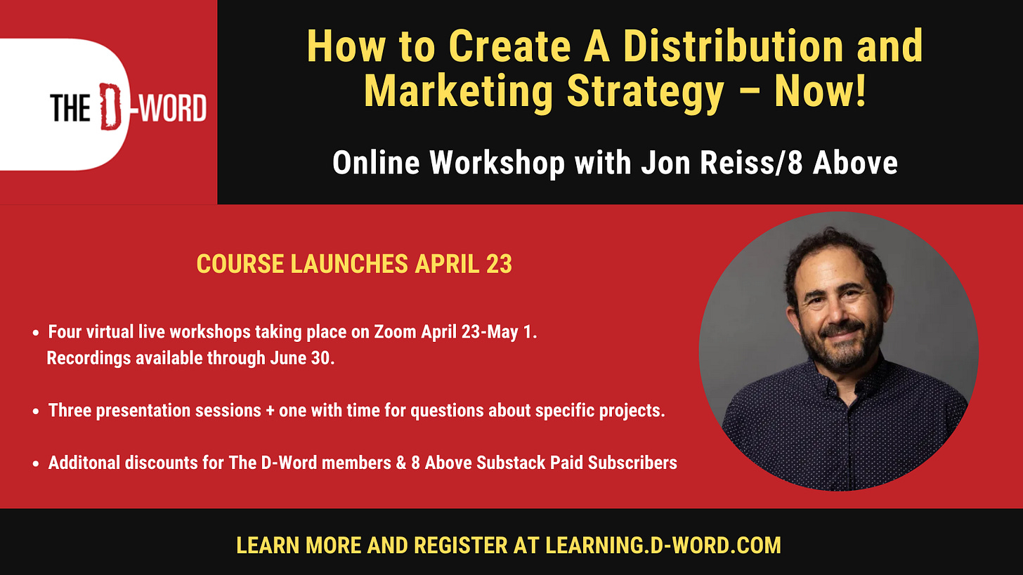 The “traditional” distribution landscape is essentially gone - 99% of independent filmmakers are now on their own to find new and creative solutions to ensure their films reach audiences in an impactful way. In this four-part virtual workshop, I will outline fundamental principles and real-world strategies for success in the ever-changing and often-daunting realm of distribution and marketing.